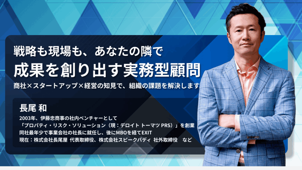 私の強みは、大企業の組織論からベンチャーの0→1、そして上場企業の経営執行まで、それぞれの立場で成果を出してきた**「現場での実務経験」**にあります。